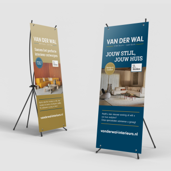 Voor Van der Wal Interieurs hebben wij een reeks stijlvolle roll-up banners mogen ontwerpen ter promotie van hun winkel. De banners zijn ingezet tijdens een recente beurs en zullen ook in de toekomst gebruikt worden bij andere promotionele activiteiten en presentaties.