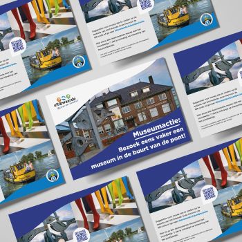 Voor Uit®waarde hebben wij een campagne vormgegeven voor de musea in het “stroomgebied” van de pontjes. De museums zijn aanbevelingen die de kaartverkopers kunnen doen. En als extra service een online verwijzing naar deze musea, inclusief bijbehorende kortingsactie, met behulp van een QR-code op achterzijde van het ticket dat elke passagier ontvangt.