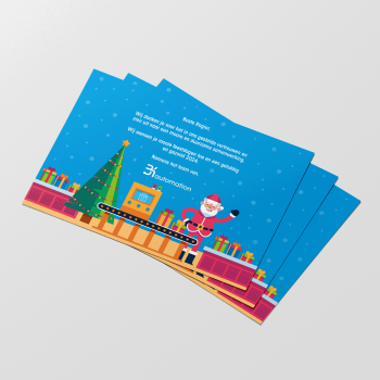 Voor de kerstpakketten van 2023 hebben wij leuke persoonlijke kaartjes gemaakt. Door het gebruik van een illustratie die door middel van een machine cadeautjes maakt hebben we de kern van het bedrijf origineel verbeeld. Namelijk het verpakken van uw product.